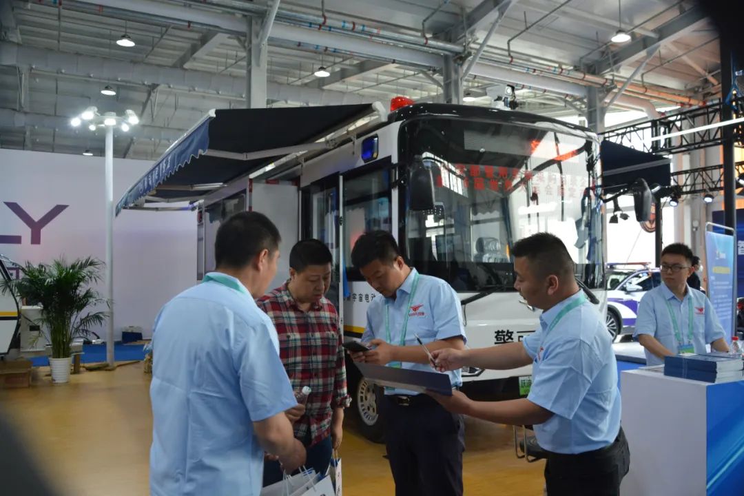跃迪展位参观群众络绎不绝,洽谈区宾客满堂。跃迪汽车简约大气的车身,精致考究的内饰,温馨舒适的乘坐体验,吸引着诸多观众的驻足参观。跃迪工作人员用饱满的热情接待参观嘉宾,向参观人员耐心介绍跃迪警用装备的产品用途、外观、内饰、性能、技术等多个方面的优势。参观人员对产品性能及优势了解之后,表现出浓厚的合作意向,跃迪汽车洽谈现场异常火爆。