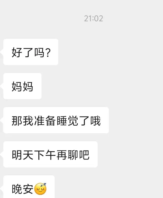 到9点她就乖乖跟我说:到点睡觉啦,明天下午再聊,晚安。睡前还自己定好了第二天的闹钟。