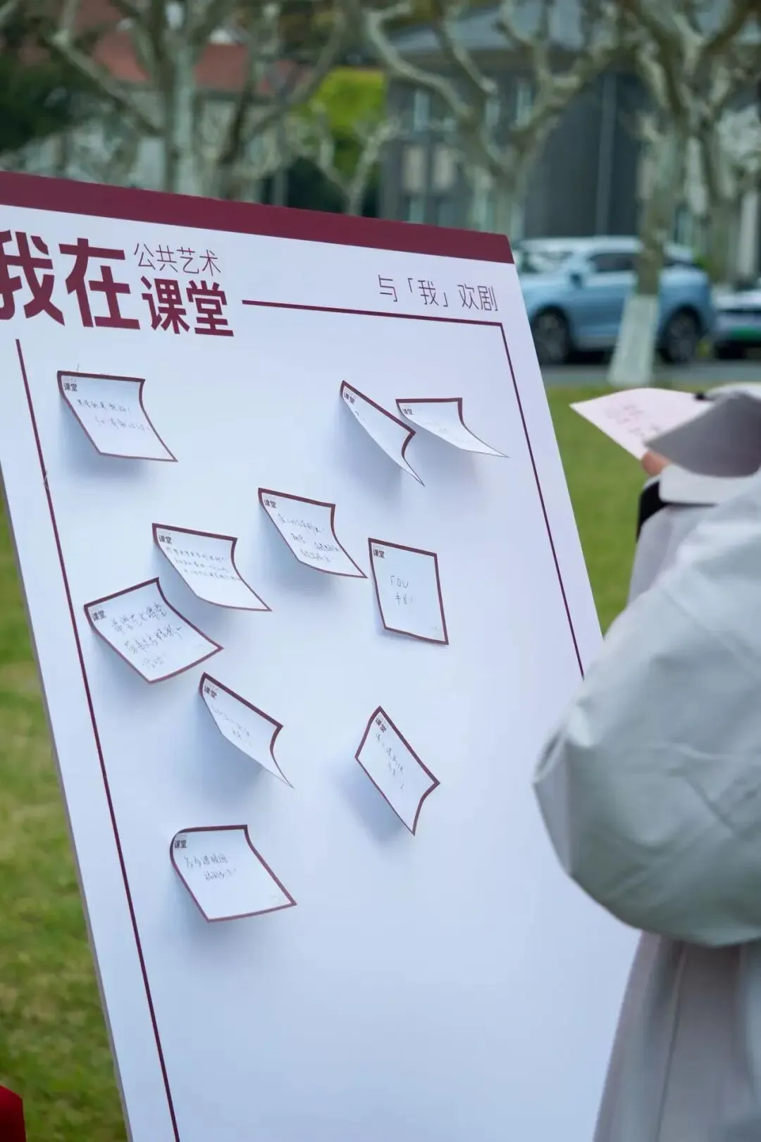 与此同时,公共艺术课堂还为同学们准备了精美周边礼品,并设置了心愿便签墙。许多同学驻足写下对艺术的热爱、对校园生活的美好期许,一张张温馨的便签贴满墙面,成为春日校园里一道温暖的风景线。还有不少同学将活动现场的热闹场景、心仪的剧目福利分享至小红书等社交平台,让这份校园艺术喜悦传递得更远,也让更多人感受到复旦校园浓厚的艺术氛围。