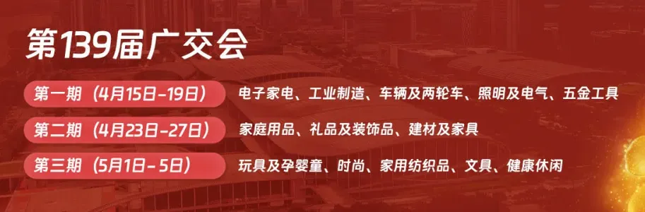 2026年4月15-19日,2026第139届春季广交会第一期(机电工业类),在广州琶洲广交会展馆开展!