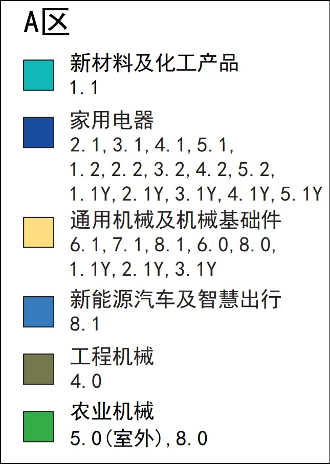 新材料及化工产品、家用电器、通用机械及机械基础件、新能源汽车及智慧出行、工程机械、农业机械(室外)、动力/电力设备、加工机械设备、工业自动化及智能制造、电子消费品及信息产品、服务机器人专区、五金、工具、汽车配件、农业机械(室外)、工程机械(室外)、车辆(室外)、摩托车、新能源、自行车、电子电气产品、照明产品等。