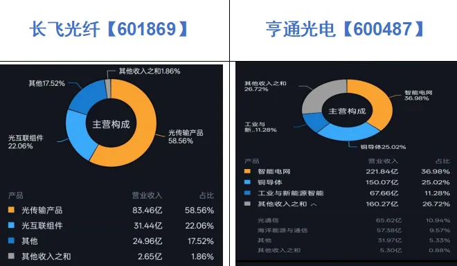 长飞光纤业务集中度高,专注于光通信领域,尤其是光传输产品和光互联组件;而亨通光电业务更为多元化,在电力传输(智能电网、铜导体)和光通信等多个领域均有布局,且电力相关业务规模较大。这种差异可能与两家公司的战略定位、发展历程以及市场选择有关。