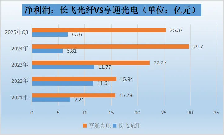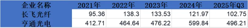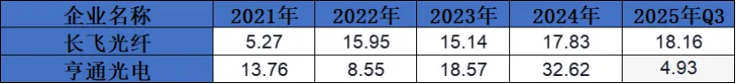 营收规模:在各年度及2025年前三季度,亨通光电的营业收入均远高于长飞光纤。亨通光电业务布局可能更为广泛,除了光通信业务外,在智能电网、铜导体、工业与新能源智能等领域均有业务开展,多元化的业务结构为其带来了更大的营收规模。而长飞光纤业务相对集中在光通信领域,营收规模相对较小。