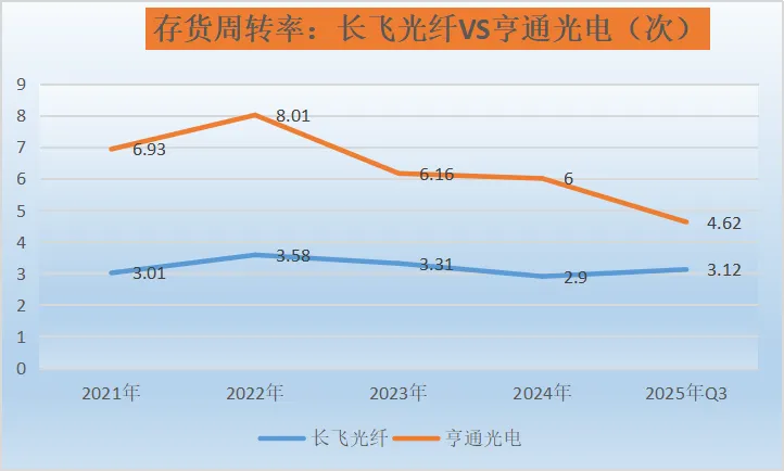 2025年第三季度回升至3.12,显示公司的存货管理状况有所改善,但与2022年相比仍有差距,需要持续关注和优化。