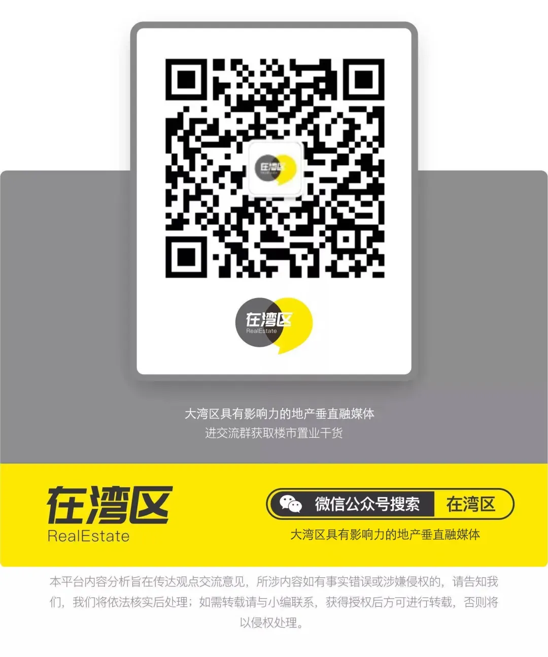 三、“在湾区”不保证所有信息、文本、图形、链接及其它项目的绝对准确性和完整性,故仅供访问者参照使用,因依赖该资料所致的任何损失,本公众号不承担任何法律责任。
