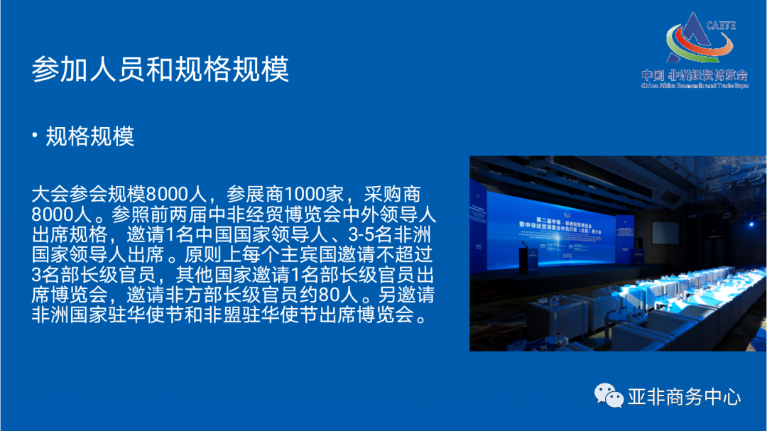 目前,已有45个非洲国家和3个国际组织共257人报名参会。多家国际组织、境外金融机构和商协会将组织非洲企业和采购商参会参展。