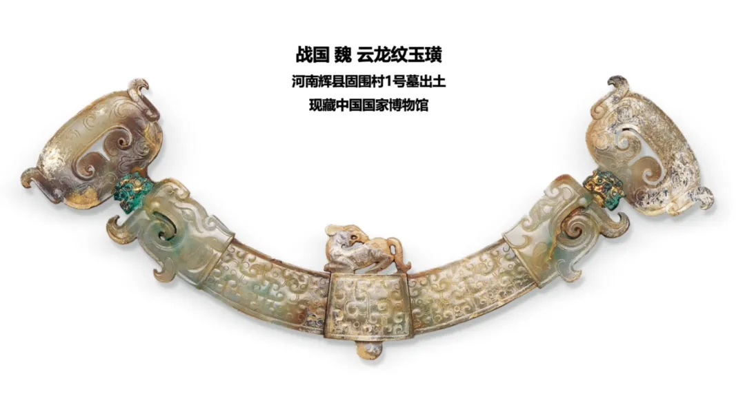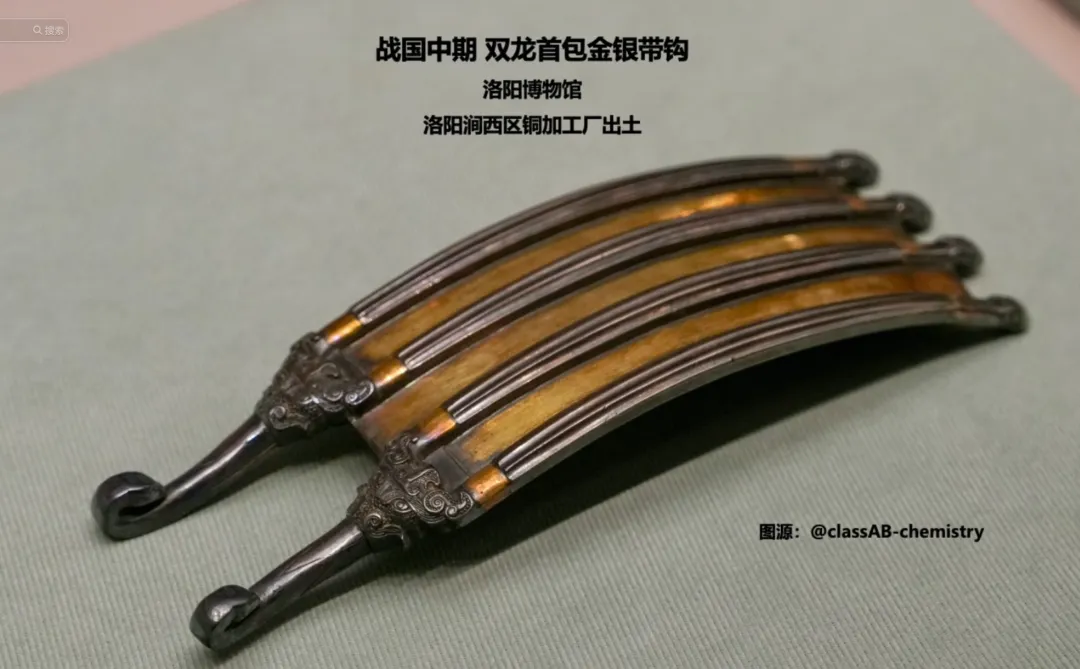 战国包金镶玉嵌琉璃银带钩是一件集工艺、艺术与历史价值于一身的战国时期贵族服饰配件,该带钩于1950年至1953年间出土于河南辉县固围村5号墓,属于战国中晚期魏国贵族墓葬遗物,很可能为魏国王室用品,现藏于中国国家博物馆。