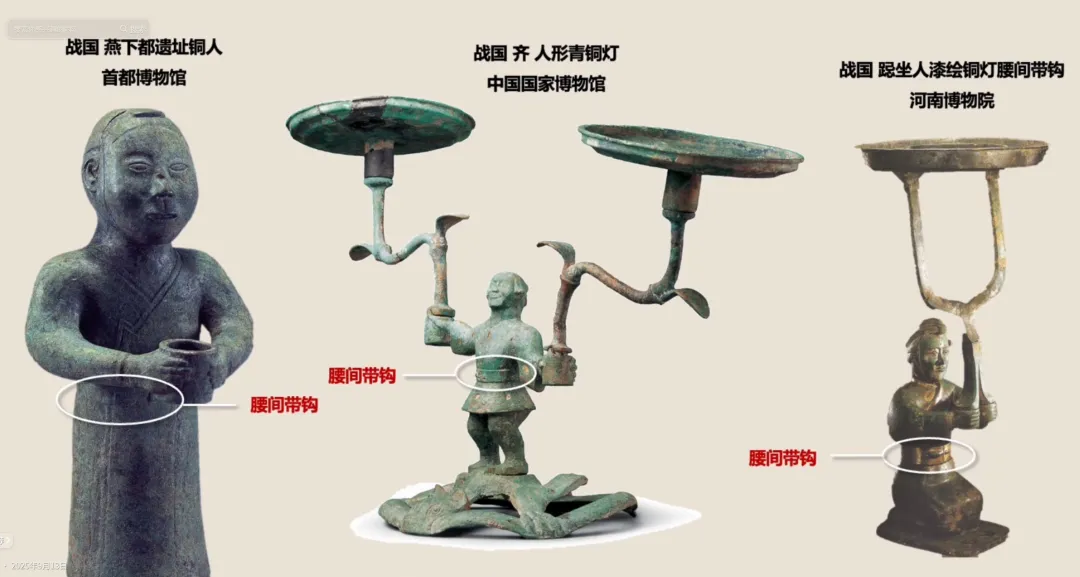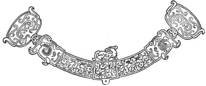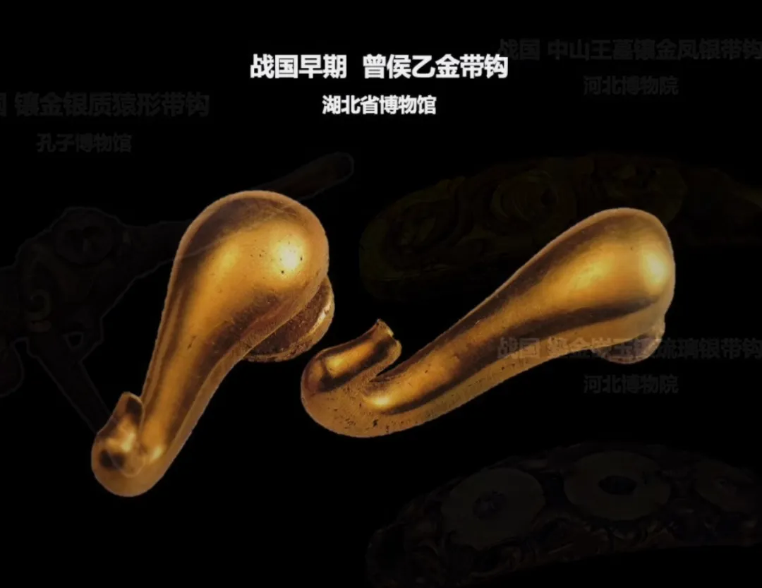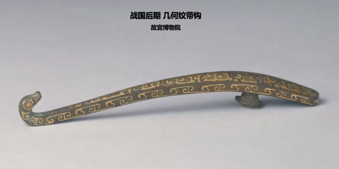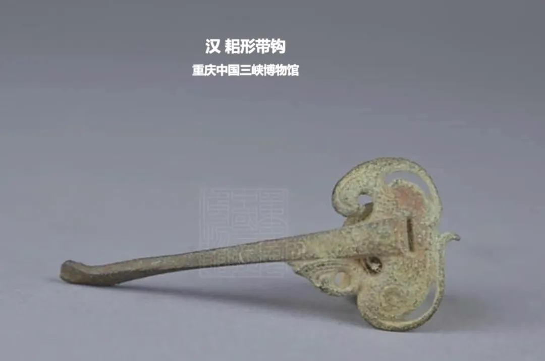 《庄子·胠箧》:“窃钩者诛,窃国者为诸侯。”庄子将带钩与国家并提,隐喻时事,孟子有钩金舆羽论轻重的典故。古人常借带钩引申比喻,阐述世事生活,如“以瓦注者巧,以钩注者惮,以黄金注者殙”(《庄子·达生》)、“不爱江汉之珠,而爱巴蜀之钩”(曹丕《与王朗书》)、“孔子辞廪丘,终不盗刀钩”(《淮南子·汜论训》)等,或以小见大,或贵贱对比,赋予了带钩别样的文化内涵。