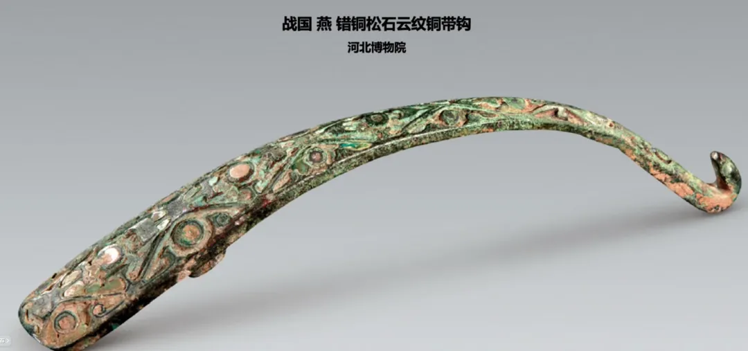 值得一提的是,带钩虽小,却承载重大历史典故。《史记·齐太公世家》有关于“使管仲别将兵遮莒道,射中小白带钩……桓公之中钩,佯死以误管仲”的记载。春秋时期,齐桓公在还是公子小白的时候,曾在莒国避难,其兄弟公子纠在鲁国避难。后齐国出现变故,王位空缺,贵族大臣请二人回国继位,规定先到国都者为君。管仲为了让公子纠抢先即位,在半路截击射杀小白,关键时刻正是腰间带钩替他挡住了箭,佯死骗过管仲,提前到达齐国即位,后来成为了历史上著名的春秋五霸中的第一霸。《史记·晋世家》“管仲射钩,桓公以霸”同样记载了这一历史事件。齐桓公小白曾因带钩挡箭而幸免于难,最终成就霸业,“带钩救主”也成为千古佳话。此物的存在,正是那段风云时代的物质见证。