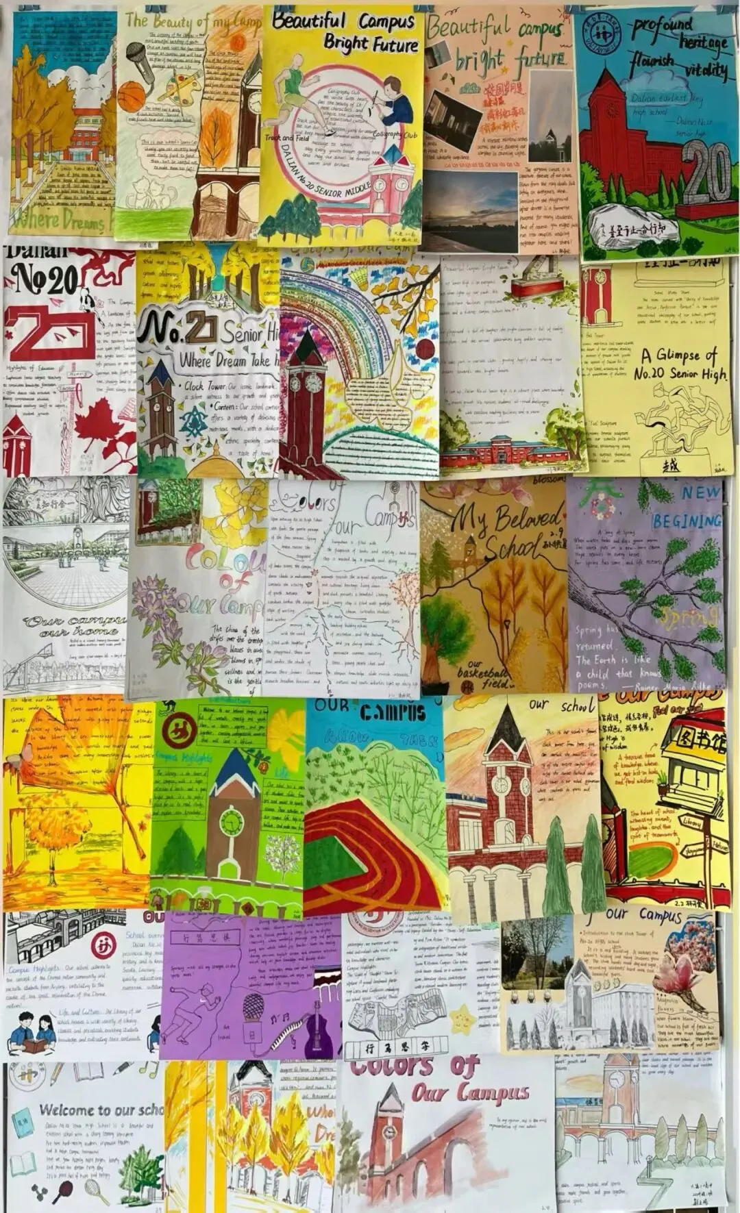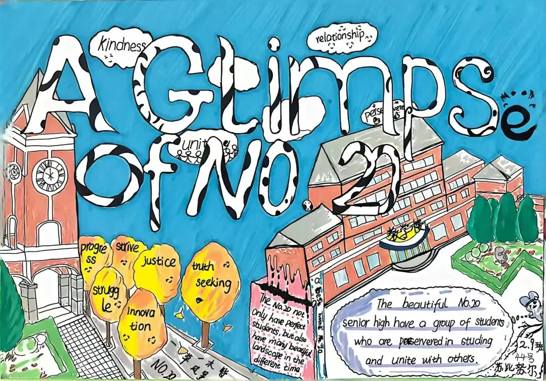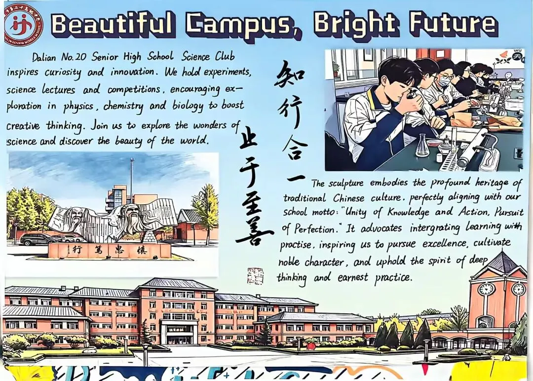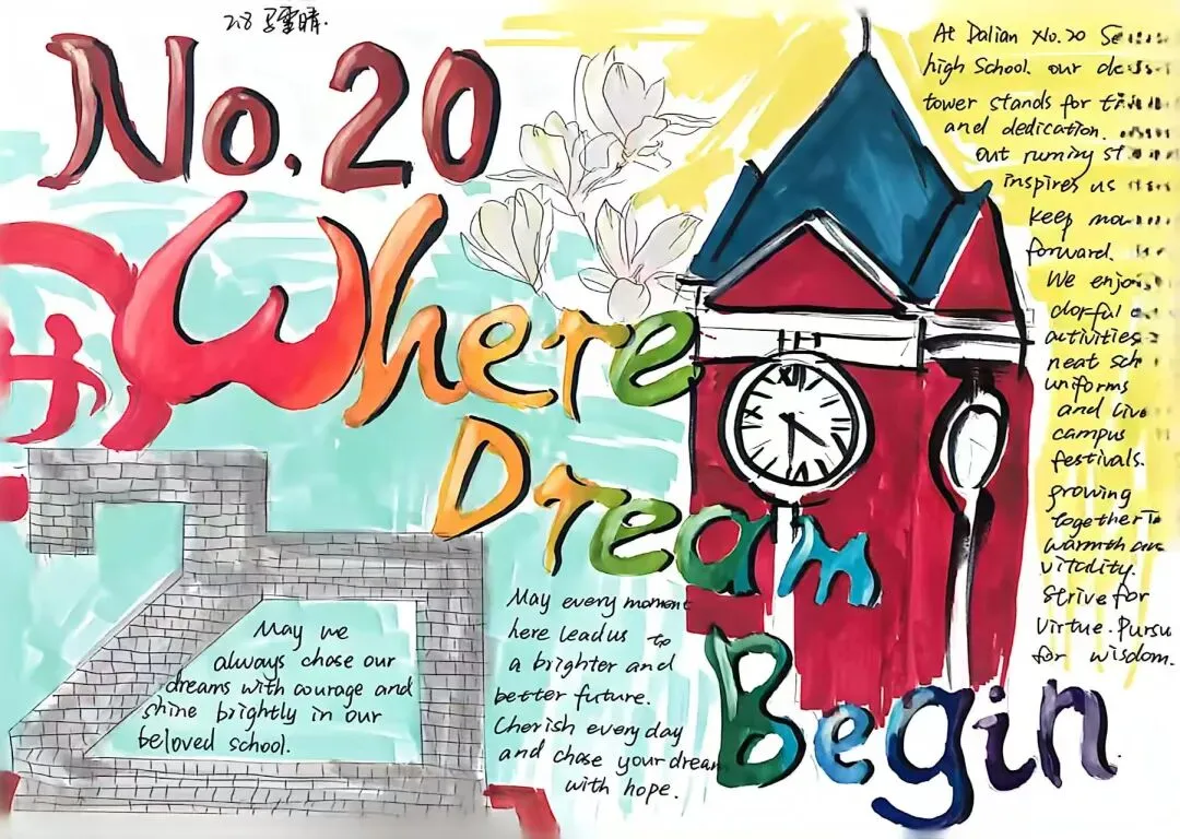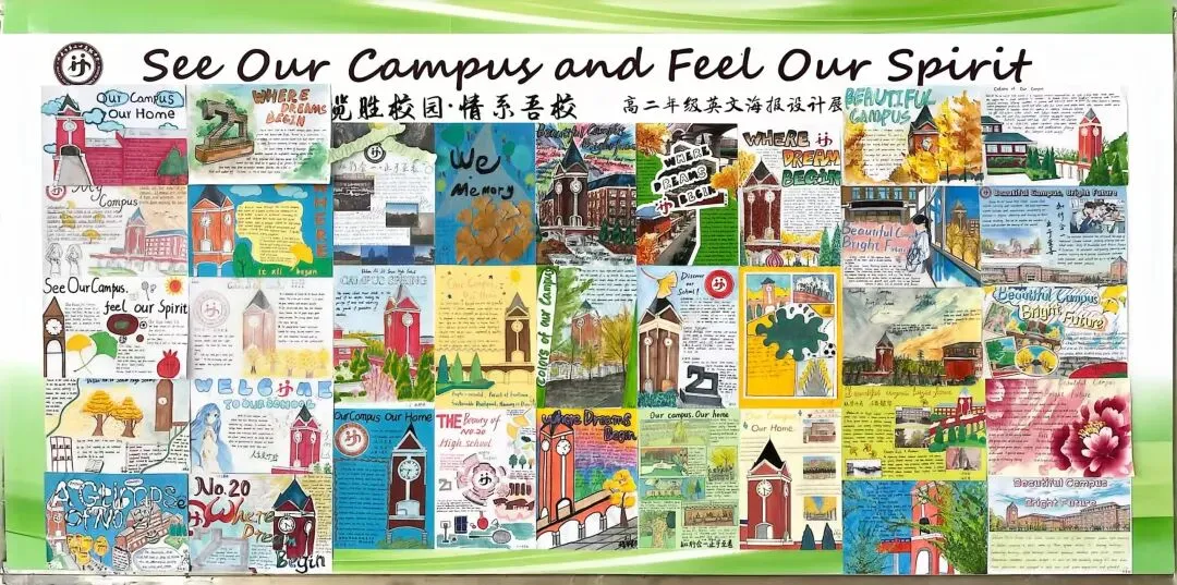 为提升学生英语综合运用能力,展现学校校园文化与精神风貌,大连市第二十高级中学高二英语组近日成功举办了“See Our Campus, Feel Our Spirit”校园风貌英文海报设计大赛。同学们用英语与艺术,绘出了一张张属于我们学校的“最美名片”。