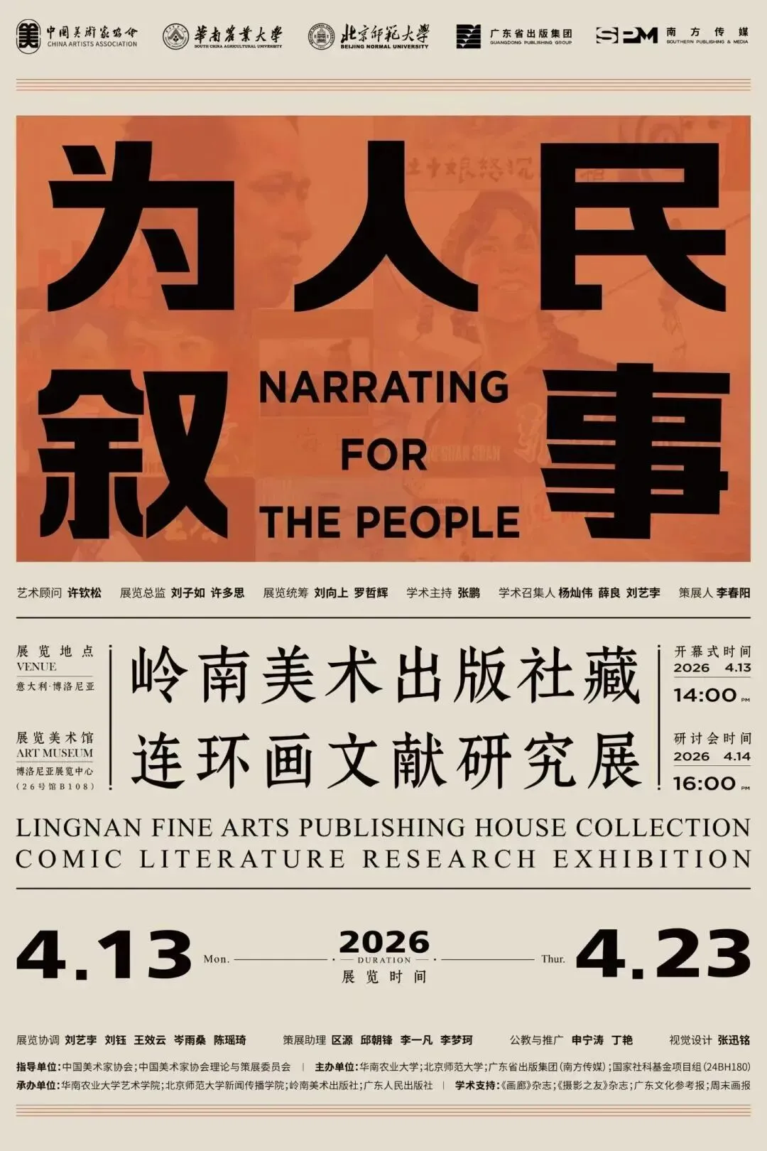 本次展览为中国美术家协会 “青年伙伴计划” 之 “新时代青年美术人才培养项目——策展100” 入选项目。策展人李春阳以岭南美术出版社的馆藏文献与研究成果为基础,通过代表性作品与翔实史料,系统梳理了岭南连环画从个体创作到群体合力、从市井烟火到时代记忆的发展路径,呈现了连环画作为 “为人民叙事” 的大众媒介的独特价值。展览亦是对岭南美术出版社建社四十余年来连环画事业的一次学术回顾与致敬。