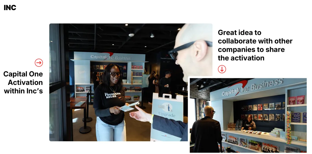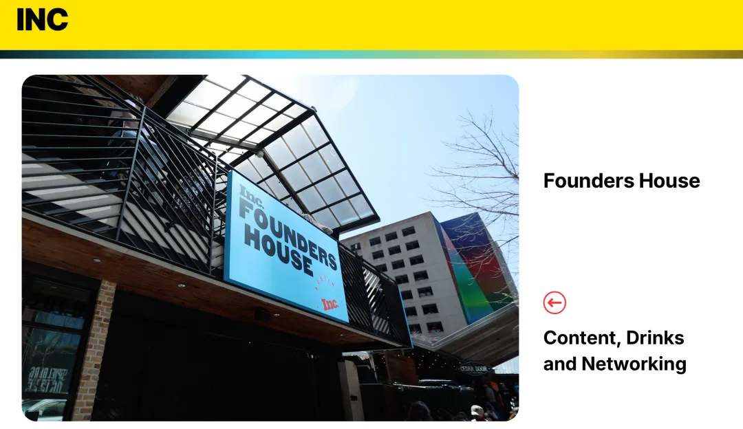 - 超大酒吧 + 工作区: 很多供人坐下来工作、吃个小汉堡、在 Inc. 品牌氛围下自在交流的空间。