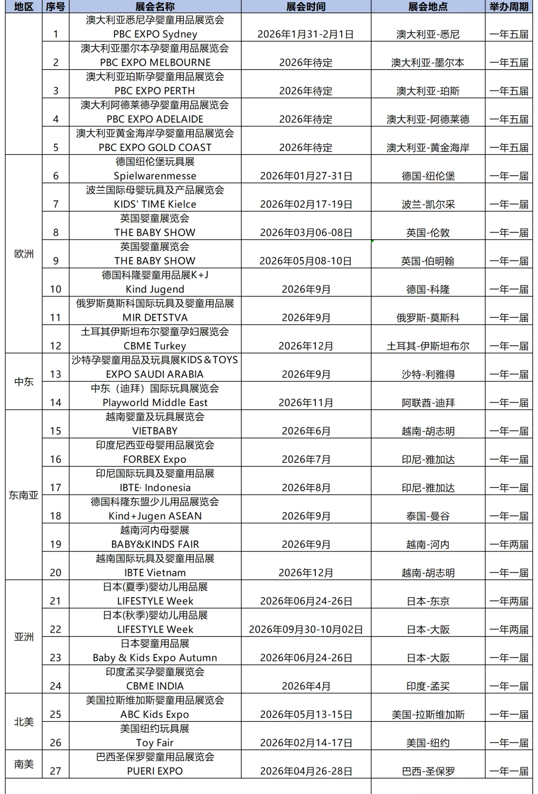 "连接全球创新,赋能母婴未来。"——Expo Bebé Chile 官方愿景Expo Bebé 2026是智利最具影响力的母婴和儿童用品专业展会,也是南美地区备受期待的家庭行业盛会。2026年展会计划于5月29-31日在圣地亚哥Metropolitan Ex-CasaPiedra展览中心举办。