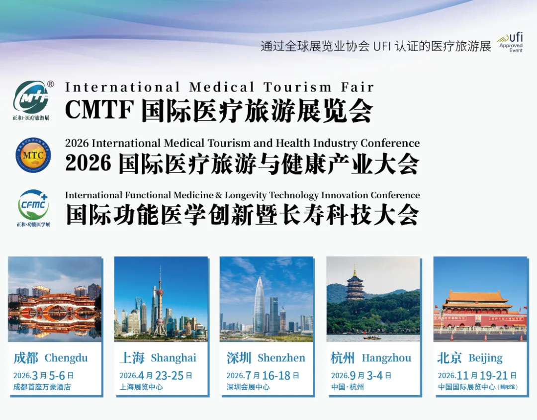 第26届上海国际医疗旅游展览会将于2026年4月23-25日在上海展览中心隆重举办。同期举办第十六届国际细胞生物产业暨细胞治疗与再生医学大会、第九届国际功能医学创新暨长寿科技大会。展览面积达15000㎡,350余家企业参展,举办150余场精彩活动,预计将超25000余名专业观众到场。