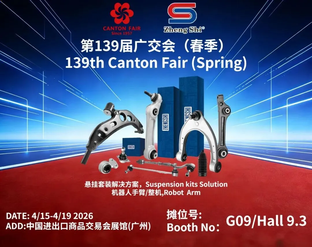第 139 届广交会第一期盛大开幕!zhengshi® 携全新底盘件、悬挂一站式解决方案及高端球头产品亮相,诚邀全球客商莅临洽谈。