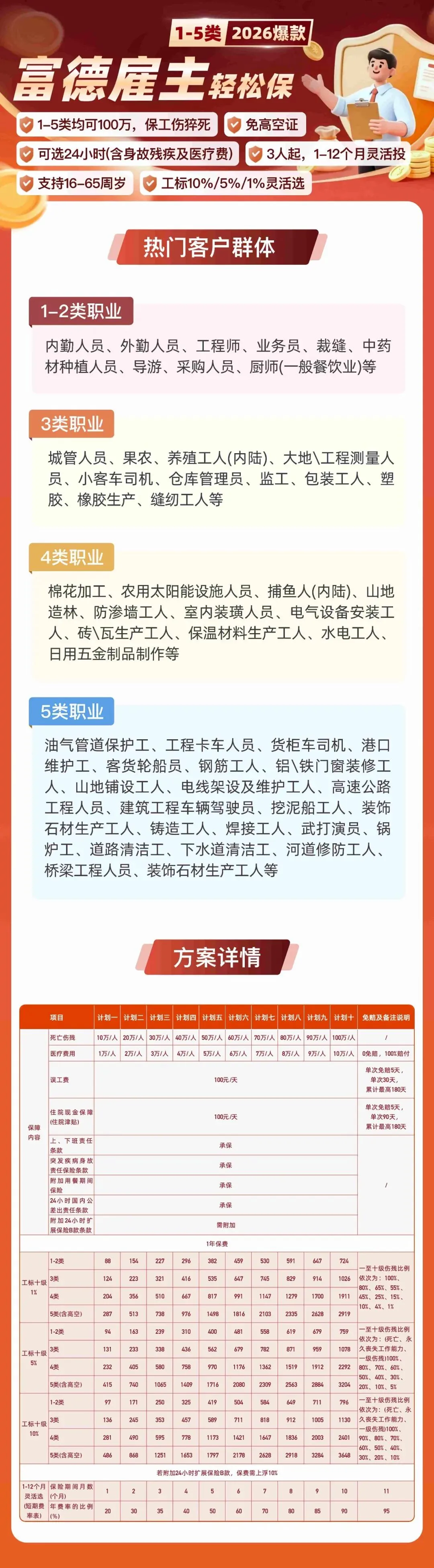 巧商宝提供多达35种针对不同工种的雇主责任险,从建筑木工到空调安装工,几乎涵盖了所有高风险职业。这种全面的覆盖能力,在行业内是非常少见的。