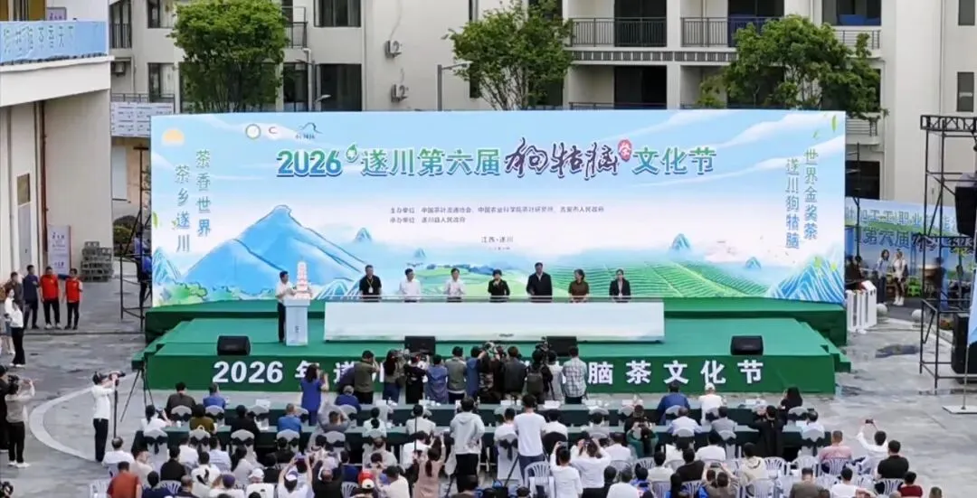 春茶吐翠,香飘四海。4月12日,2026年遂川第六届狗牯脑茶文化节在汤湖镇茶叶交易市场隆重开幕。本届文化节以茶为媒,汇聚各方力量,旨在弘扬狗牯脑茶文化、提升品牌影响力,并搭建产业合作与技术交流的高端平台,共绘茶产业高质量发展新蓝图。遂川县两山公司深度参与此次盛会,通过线下特色展销与线上实时直播相结合的模式,集中推介遂川生态农产品,生动诠释“两山”转化实践与联农带农的国企担当。