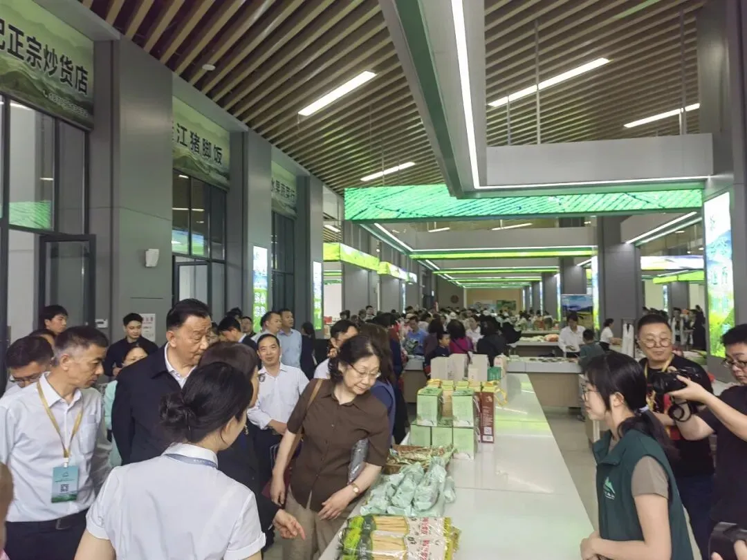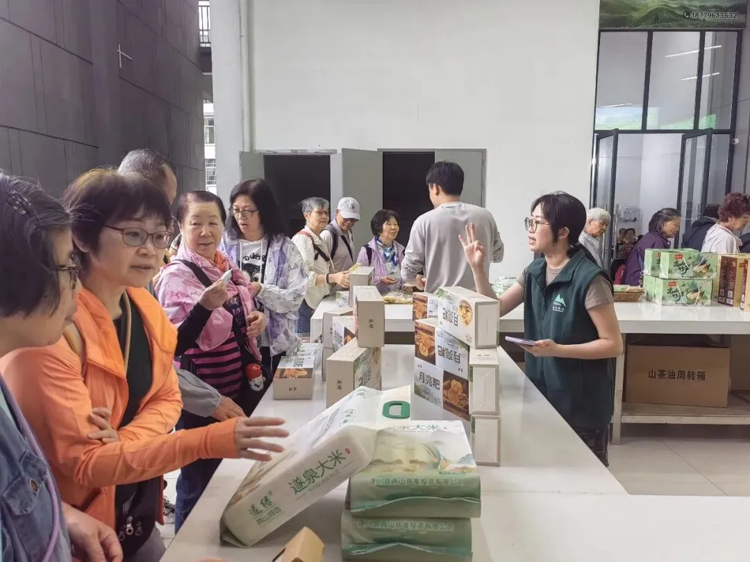 在汤湖茶叶交易市场核心区域,遂川县两山公司的展位格外引人注目。展台上,狗牯脑茶、板鸭、竹笋、蜂蜜、金桔酥、山茶油、高山大米、月亮粑等特色优质农产品整齐陈列,共同展现遂川丰饶的物产画卷。工作人员热情地向往来宾客介绍各类产品,让人们在品味茶香的同时,也能领略到遂川作为“中国名茶之乡”“中国油茶之乡”“中国金桔之乡”所孕育的全面生态产品体系。许多嘉宾驻足品鉴、咨询、购买,对遂川的生态物产表现出浓厚兴趣。