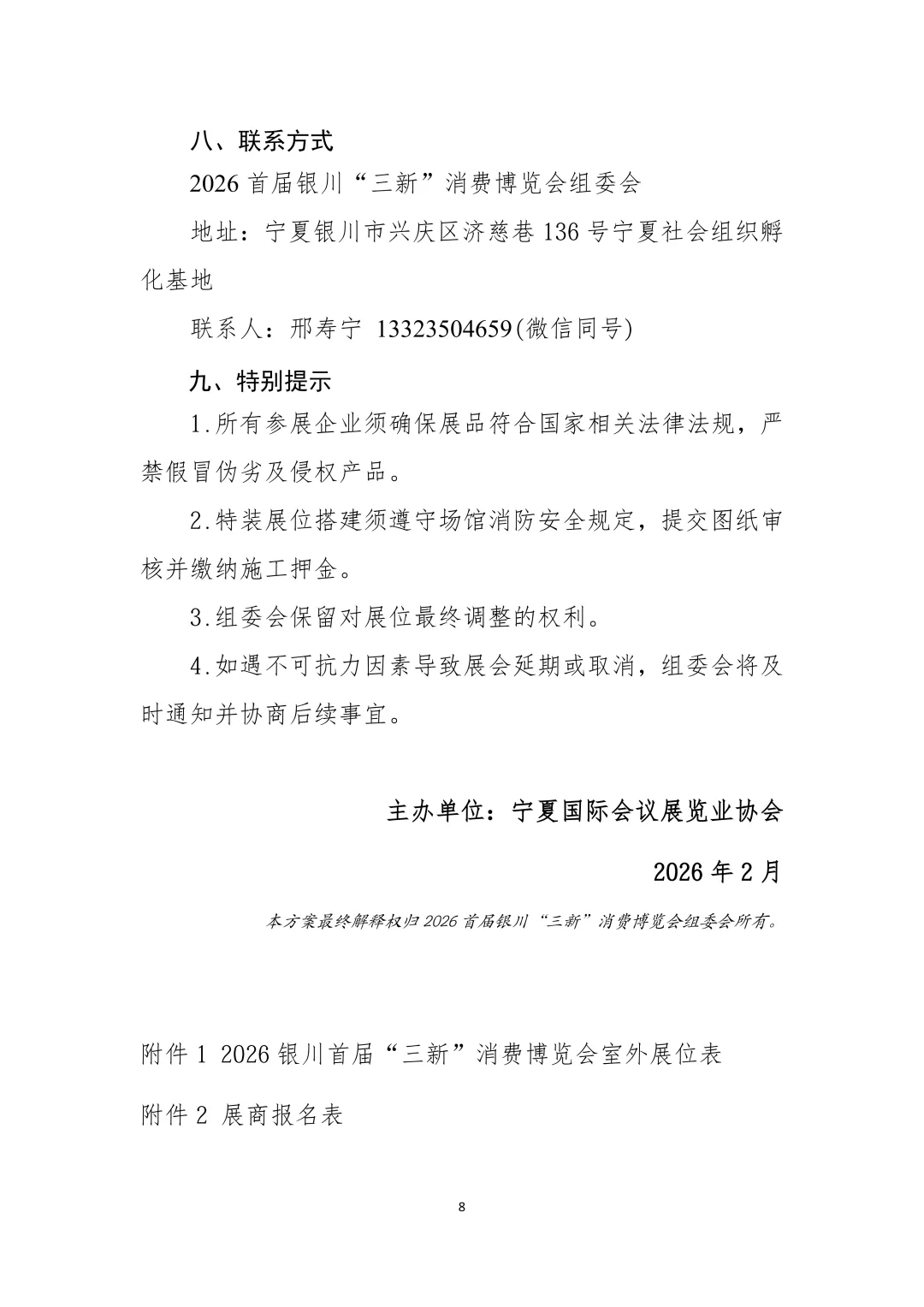 2026 首届银川“三新”消费博览会暨系列主题展活动方案