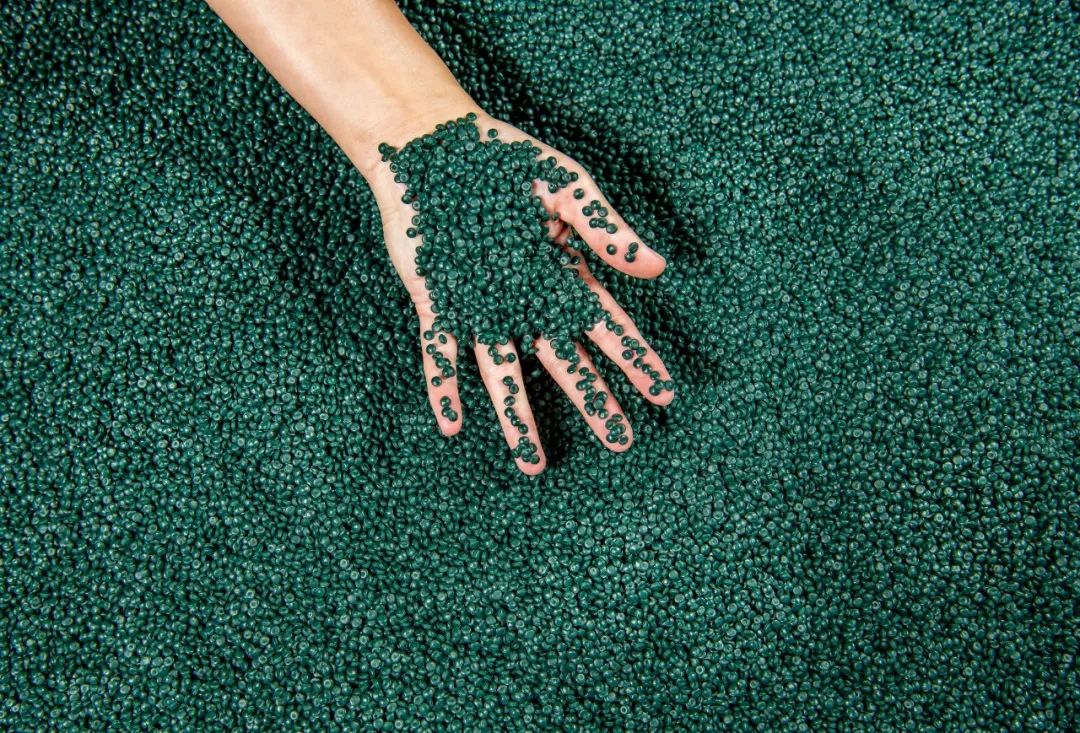 ▲巴斯夫IrgaCycle®塑料添加剂方案帮助客户使用从海洋回收的高密度聚乙烯 (HDPE)渔网生产出100%环保的瓷砖,既减少废料和碳排放,亦助力客户节省能源。4.5千克渔网大概能制造出1平方米瓷砖。