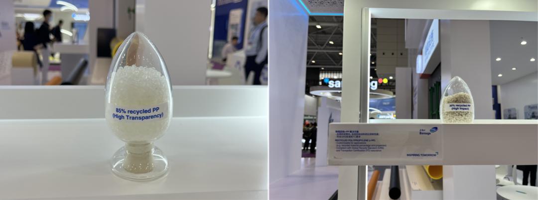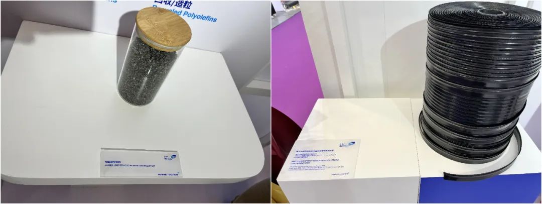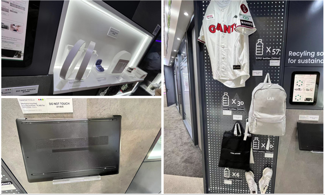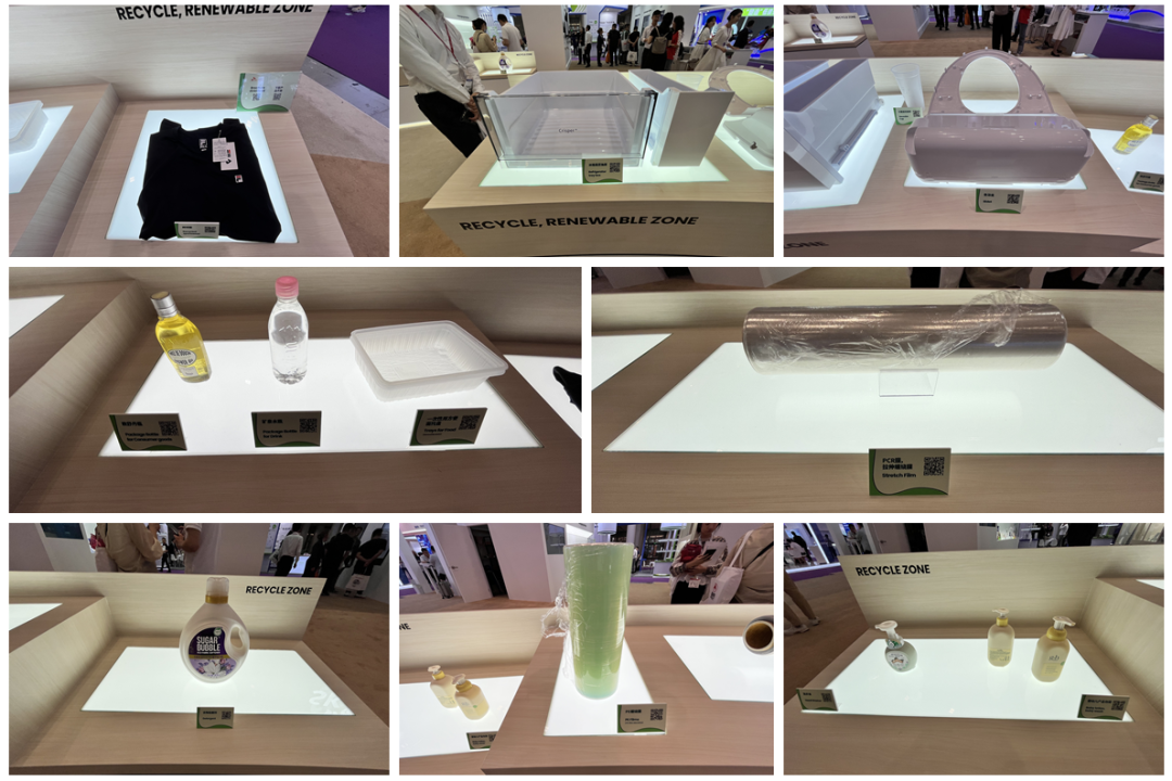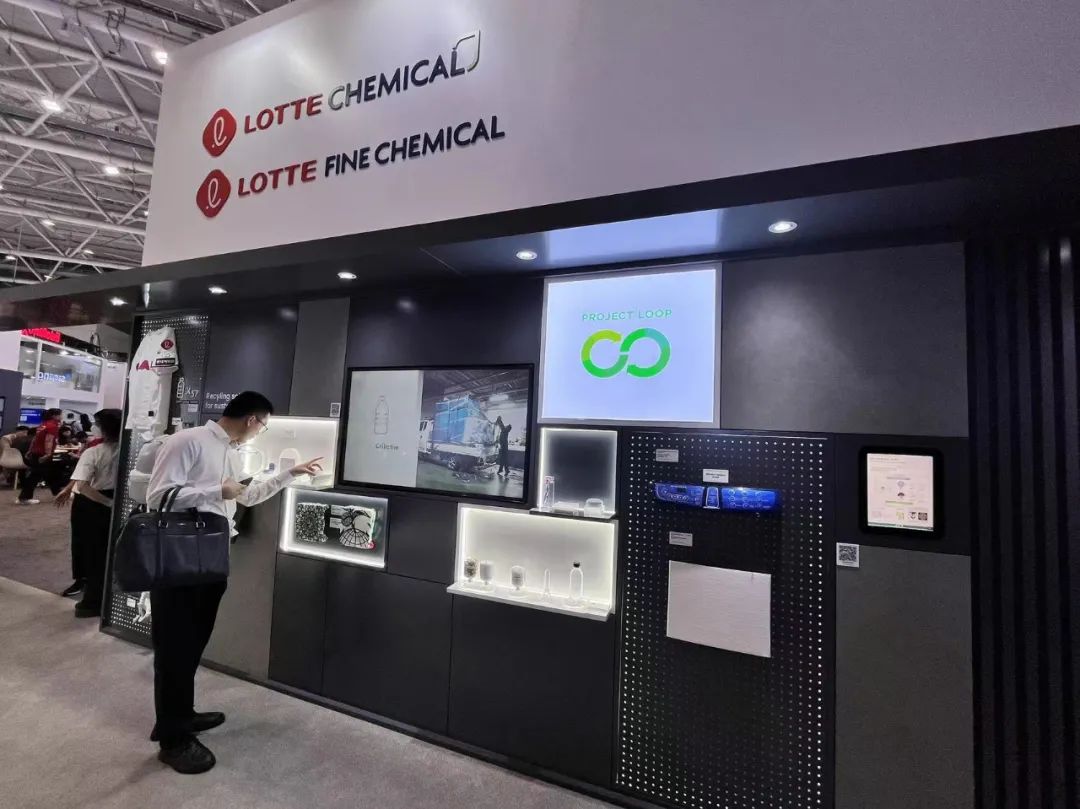 乐天化学展出了多款化学回收材料及由化学回收材料制成的产品。