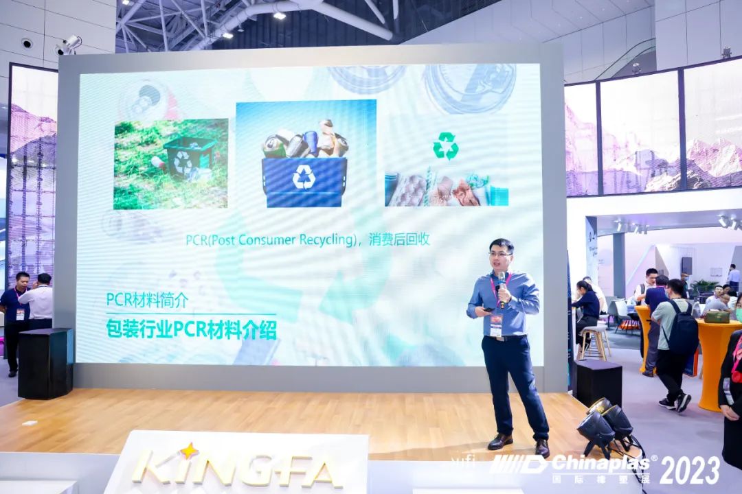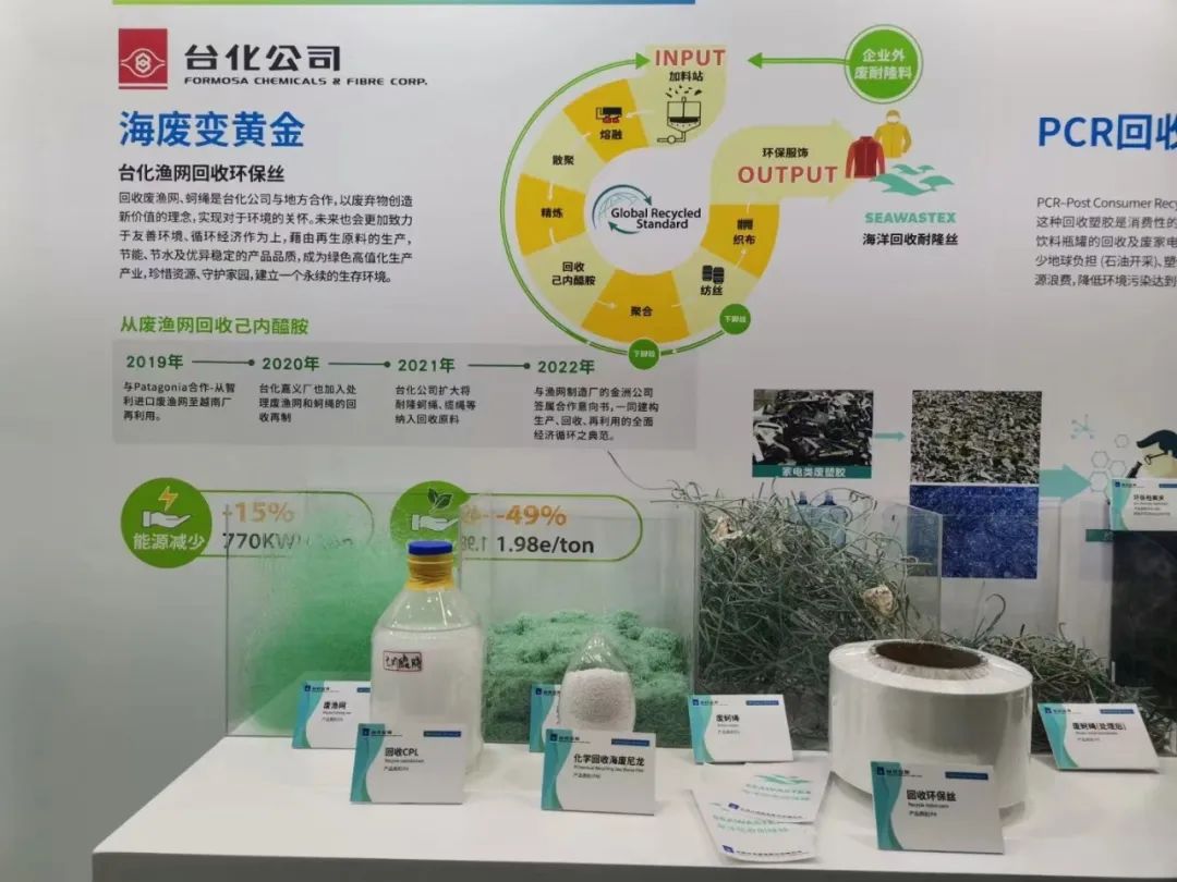 坚锋®今年展示的新产品亮点十足,让人耳目一新,PCR淘塑™Topcircle®核心产品专注于可持续与低碳功能性材料、海洋回收系统解决方案等等。