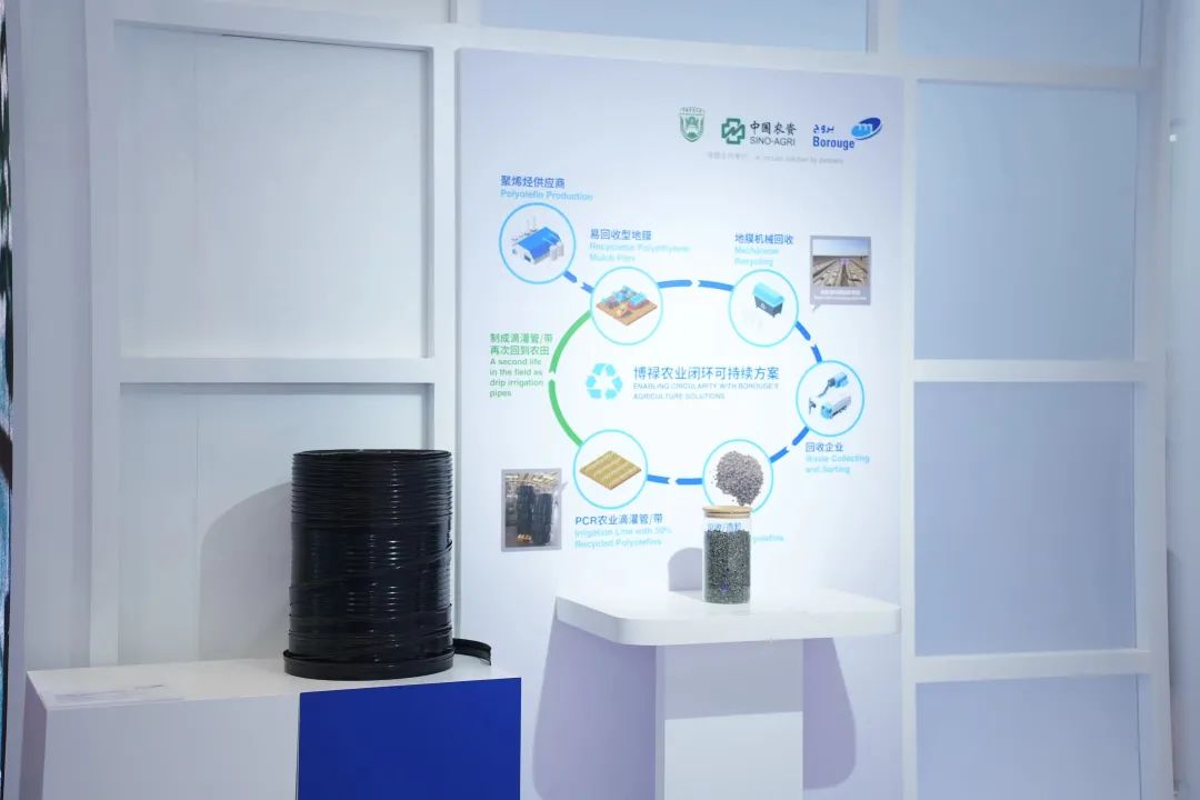 通过这一创新方案,经过物理回收的废旧地膜获得了二次生命和全新用途:消费后再生聚烯烃重新利用于生产新型农用滴灌带。