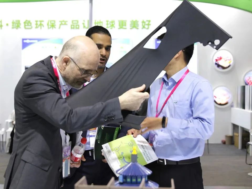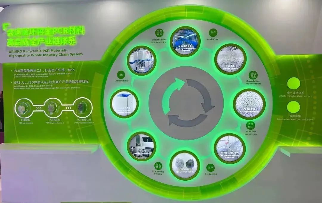 国龙塑料在本次展会推出多款“绿色 循环 低碳”可持续发展材料,全面展示再生PET、HDPE、PP三大系列产品。