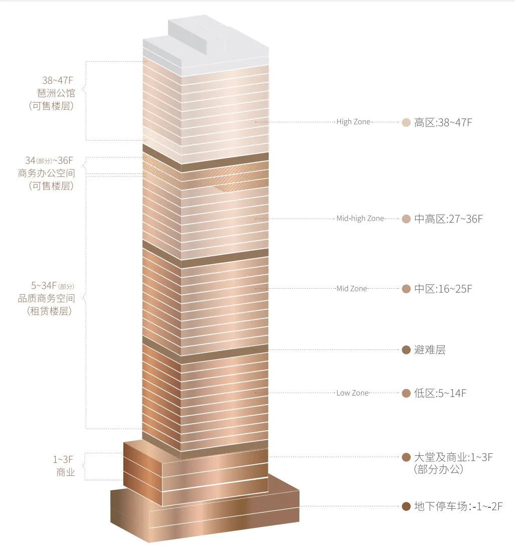 1-3F:大堂及商业、4-33F:写字楼租赁