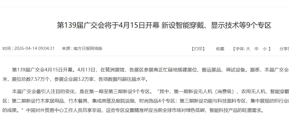 一、?百年盛会!第 139 届广交会今日开幕,规模创历史新高