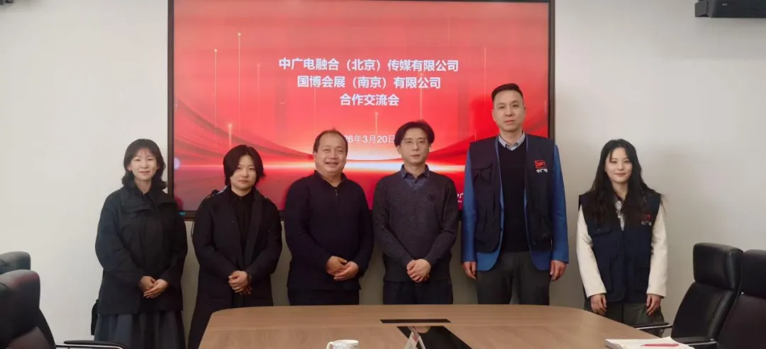 2026年3月,国博会展(南京)有限公司与中广电融合传媒(北京)有限公司在北京广电大厦举行合作交流会。国博会展(南京)有限公司总经理周忠胜、展览部副部长苟晶晶、项目经理任筱典,中广电融合传媒公司执行董事金启棣、副总经理王建全出席会议。