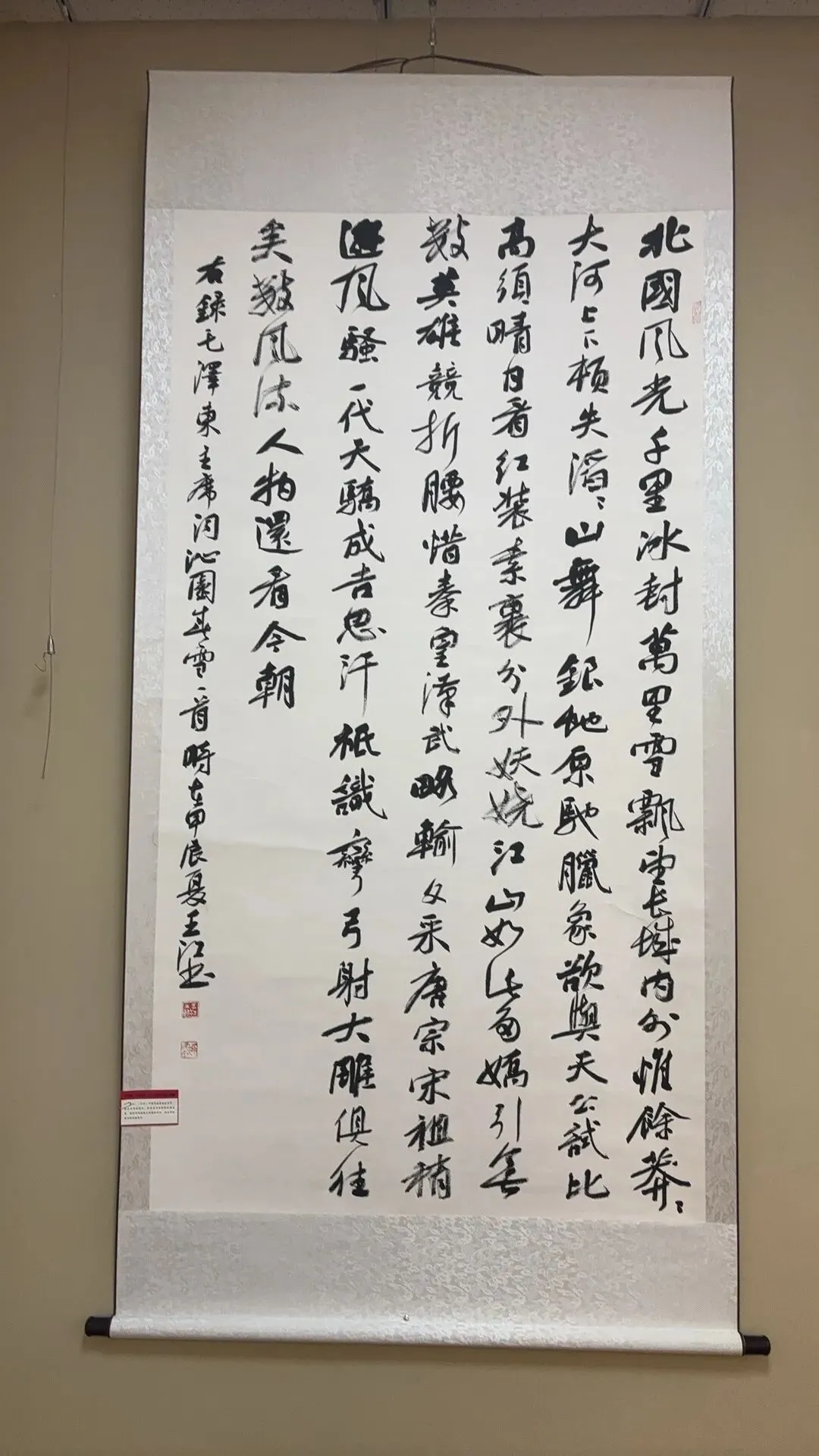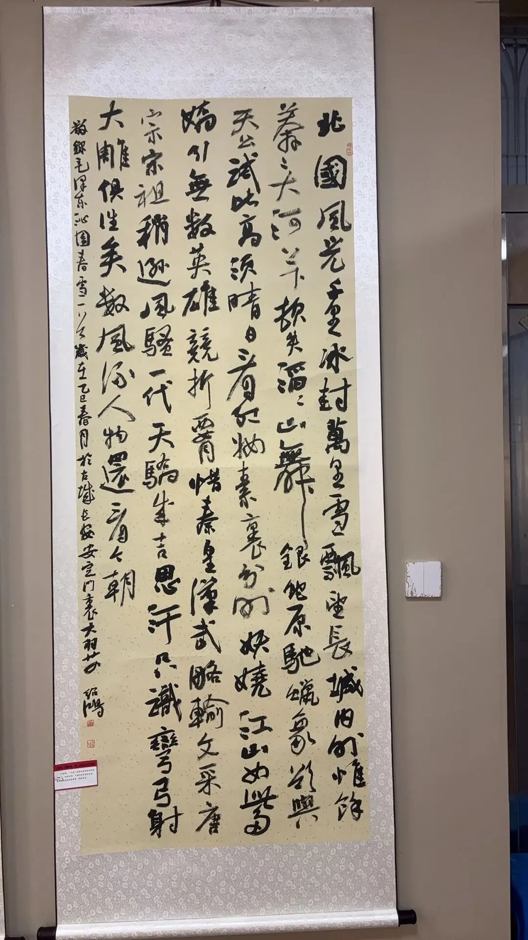 陇西县文体广电和旅游局、陇西县文学艺术界联合会主办;由中共陇右工委纪念馆、陇西县美术馆、陇西县文化馆、康勤国藏雪馆承办。 展览以毛泽东同志气吞山河的经典词作《沁园春·雪》为唯一创作内容,精心遴选了来自藏雪馆的90余幅书法精品。这些作品跨越时空,涵盖了楷书、行书、草书、隶书、篆书等多种字体,或溯源魏晋,或取法秦汉,真草隶篆,各具神采,将词作中“千里冰封,万里雪飘”的壮阔意境与“数风流人物,还看今朝”的革命豪情,通过笔墨的浓淡干湿、线条的流转飞动,淋漓尽致地呈现在观众面前。