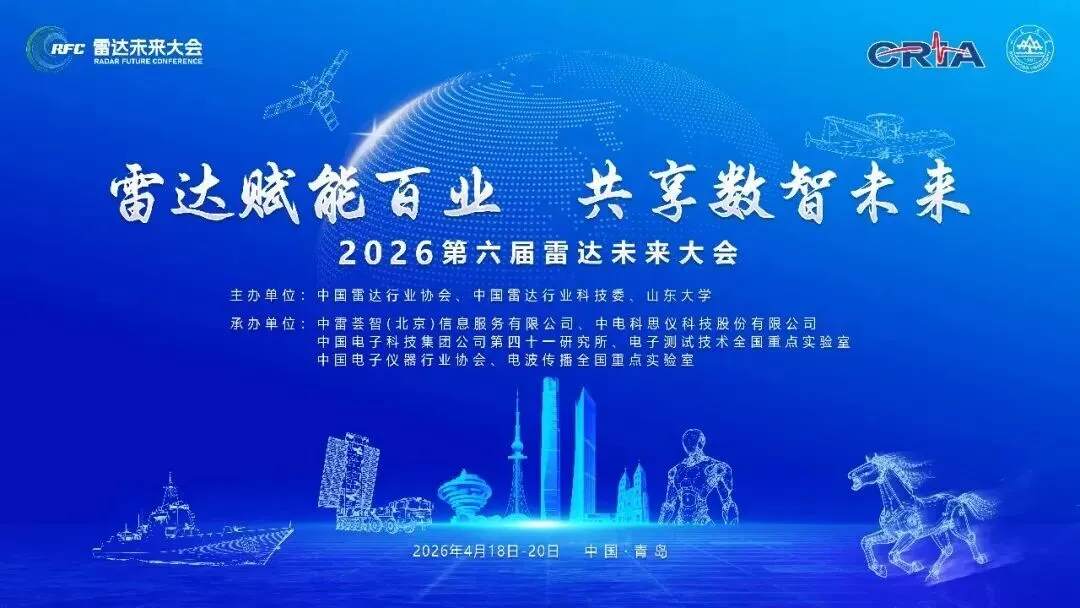 2026 第六届雷达未来大会以 “雷达赋能百业,共享数智未来”为主题,将于4 月 18 日 —20 日在中铁青岛世博城国际会议展览中心举办,聚焦雷达技术前沿、低空经济、AI 融合创新等重点方向,汇聚院士专家、行业领袖与龙头企业,全方位展示雷达全产业链创新技术与应用落地成果,共促产业高质量发展。