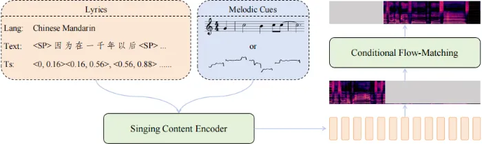 从技术架构来看,SoulX-Singer采用了当前生成式AI领域先进的Flow Matching建模范式,将歌声合成任务重新定义为音频补全问题。这一架构选择不仅提升了生成质量,更为模型的训练稳定性和推理效率奠定了坚实基础。更为关键的是,研发团队针对歌声合成中歌词、旋律与发声三者深度耦合的技术难点,创新性地引入了音符级别的精细对齐机制。通过建立歌词文本、MIDI音符与声学特征之间的精确对应关系,模型能够对每个音符的起止时间、音高高度和持续时长进行独立建模和灵活控制。这意味着用户不仅可以让AI忠实执行乐谱指令,还能在生成过程中自由调整音符结构,实现音乐编辑、重编曲等专业创作需求。