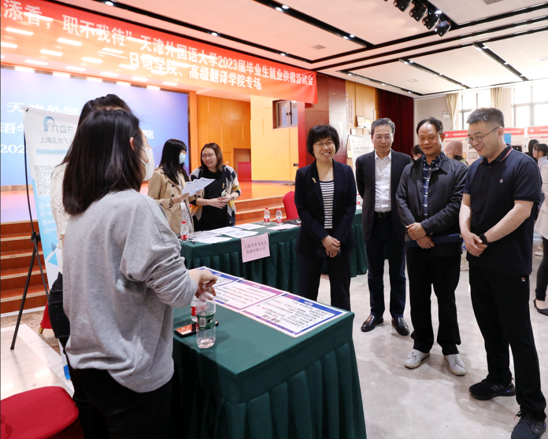 为进一步拓宽毕业生就业渠道,提高毕业生就业质量,推进就业服务工作,5月8日,我校2023届毕业生就业供需洽谈会——日语学院、高级翻译学院专场在马场道校区大学生活动中心举行。校党委书记周红蕾、副校长余江到场与用人单位进行交流洽谈,调研企业用人需求。招生就业处、日语学院、高级翻译学院相关负责人,学院硕士生导师、本科生毕业班导师参加。