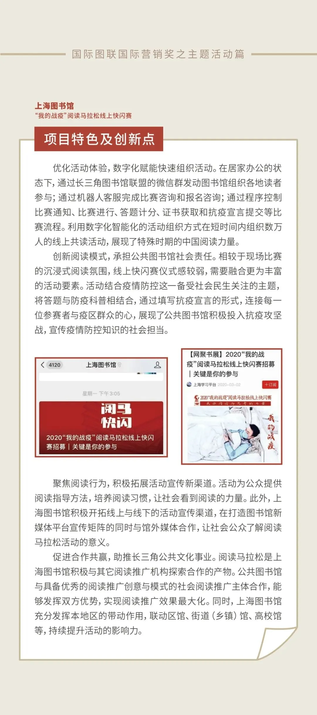 图书馆作为滋养民族心灵、培育文化自信的重要场所,在我国公共文化服务体系中一直扮演着重要角色。近年来,我国文化事业快速发展,各级公共图书馆把据新发展阶段,贯彻新发展理念,面向智慧社会建设的美好愿景,激发创新创造活力,在文旅融合发展、新技术应用和智慧化转型、社会力量参与图书馆建设、图书馆营销等多个方面积极探索,取得了丰硕成果。
