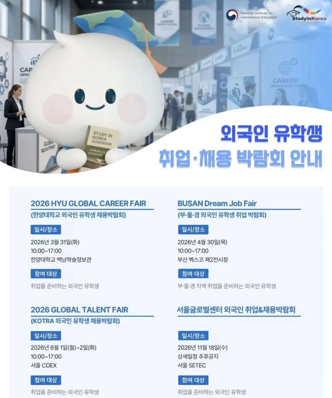 2026年韩国各地留学生就业博览会汇总