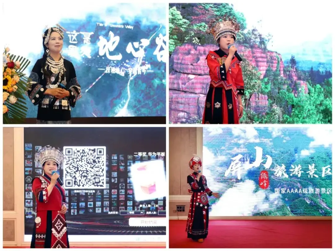 在幸运大抽奖环节的欢声笑语后,景区推介环节正式开启。鹤峰屏山旅游景区率先登场,其宛如一颗遗落人间的明珠,以“中国仙本那”的美誉闻名遐迩。景区内,清澈见底的河水在阳光的照耀下波光粼粼,河底的水草随波摇曳,仿佛在翩翩起舞。乘坐小船行驶在河面上,犹如悬浮于空中,那种奇妙的感觉令人陶醉。四周群山环绕,绿树成荫,空气中弥漫着清新的气息,让人仿佛置身于世外桃源。这里的自然风光原始而纯净,是摄影爱好者的天堂,也是都市人逃离喧嚣、放松身心的绝佳去处。