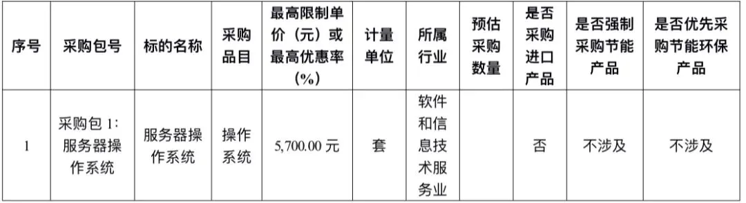 一、征集邀请鄂尔多斯市政府采购中心拟对内蒙古自治区基础软件(服务器操作系统)框架协议采购项目项目进行框架协议采购征集,兹邀请符合本次征集要求的供应商参加征集。二、征集人信息1、征集人:鄂尔多斯市政府采购中心2、联系人:鄂尔多斯市政府采购中心三、征集项目概述1、征集项目名称:内蒙古自治区基础软件(服务器操作系统)框架协议采购项目2、征集项目编号:K15060120260000023、征集项目简介:依据《政府采购框架协议采购方式管理暂行办法》的要求,基础软件(服务器操作系统)属于集中采购目录以内品目,且属于小额零星采购范畴,可以采用框架协议采购方式采购,鄂尔多斯市政府采购中心对基础软件(服务器操作系统)框架协议采购项目进行公开征集,内蒙古自治区自治区本级所属采购单位、呼和浩特市所属采购单位、包头市所属采购单位、乌海市所属采购单位、赤峰市所属采购单位、通辽市所属采购单位、鄂尔多斯市所属采购单位、呼伦贝尔市所属采购单位、满洲里市所属采购单位、巴彦淖尔市所属采购单位、乌兰察布市所属采购单位、兴安盟所属采购单位、锡林郭勒盟所属采购单位、二连浩特市所属采购单位、阿拉善盟所属采购单位共同使用征集结果。 本框架协议项目的入围供应商应当为入围产品生产厂家或者生产厂家唯一授权供应商。入围供应商应在各盟市委托至少十家、旗县委托至少五家代理商,按照框架协议约定接受采购人合同授予,并履行采购合同。入围供应商应当在框架协议中提供委托协议和委托的代理商名单。4、采购需求:采购内容: