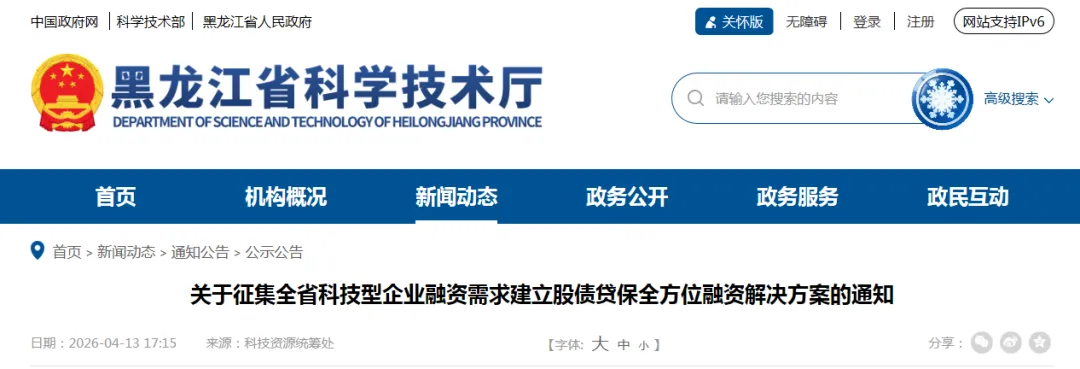 为全面贯彻党的二十届四中全会和中央金融工作会议精神,认真落实《国务院办公厅关于做好金融“五篇大文章”的指导意见》以及中国人民银行、科技部等七部委联合印发的《关于扎实做好科技金融大文章的工作方案》精神,落实《政府工作报告》要求,进一步推动我省科技型企业获得融资支持,促进科技成果转化与产业化,省科技厅会同人民银行黑龙江省分行面向全省科技型企业征集融资需求,现将有关事项通知如下: