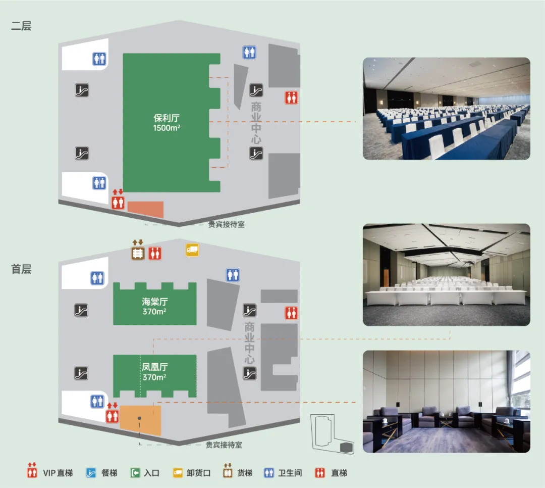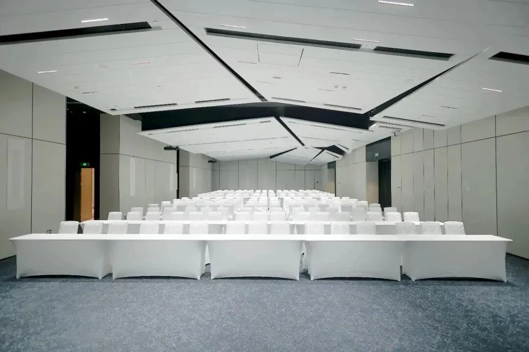 灵活会议:会议可使用面积约 2554㎡,拥有多个可灵活分隔组合的多功能厅,从几十人的私董会到2000人的大型峰会,空间形态随需而变。