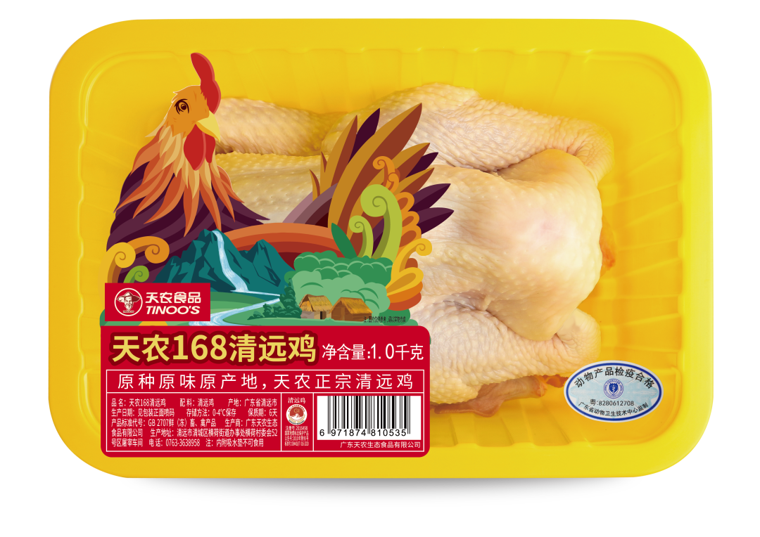 天农旗下有“天农”、“凤中皇”、“凤中凤”“飞来峡”等知名品牌,天农纯种清远鸡产品畅销中国20多个省份以及香港、澳门地区,年销售长天龄的高端纯种清远鸡3500万羽。为中国消费者带来安心愉悦的美食体验,领军中国高端禽类食品市场。