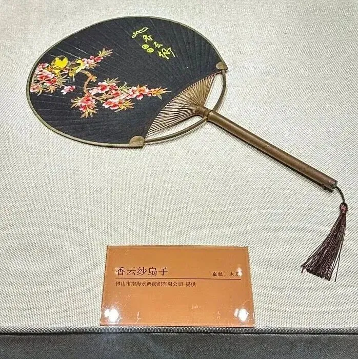 据有关文献资料记载,“响云纱”一词最早见于清咸丰庚申年(1860年)重订的《华英通语》“香云纱”一词最早记录于清同治七年(1868年)清代稿抄本《物意管窥》。香云纱经过缫丝、织造及染整三种技艺生产而成,其面料也从最早的素纱和简单提花图案,到复杂提花图案,再到“扭眼通花”的白坯纱,织造技艺的日渐精进,生动展现了广东丝织技艺的长足发展。时至今日,香云纱已作为一项重要的非物质文化遗产项日被保护和传承。