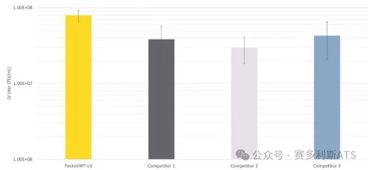 与慢病毒生产领域的竞争者相比,FectoVIR®-LV表现出高产率。
