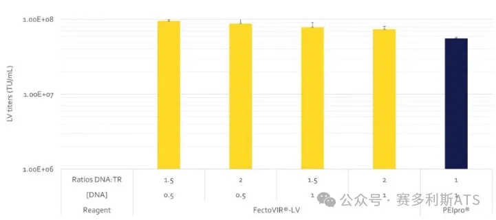 与其他市售用于慢病毒生产的转染试剂相比,FectoVIR®-LV可提高功能滴度达3倍。