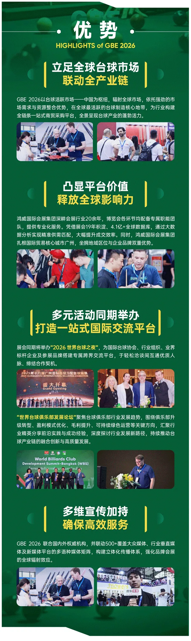 GBE2026第二十届广州国际台球及配套设施展(简称:广州台球展)5月10-12日在广交会展馆B馆举办!展示覆盖全产业链软硬件设施、加工器械、俱乐部运营管理系统和解决方案、AI智能创新技术等,为从业者、采购商、运营方及爱好者提供一站式了解行业前沿科技与商贸合作的平台。