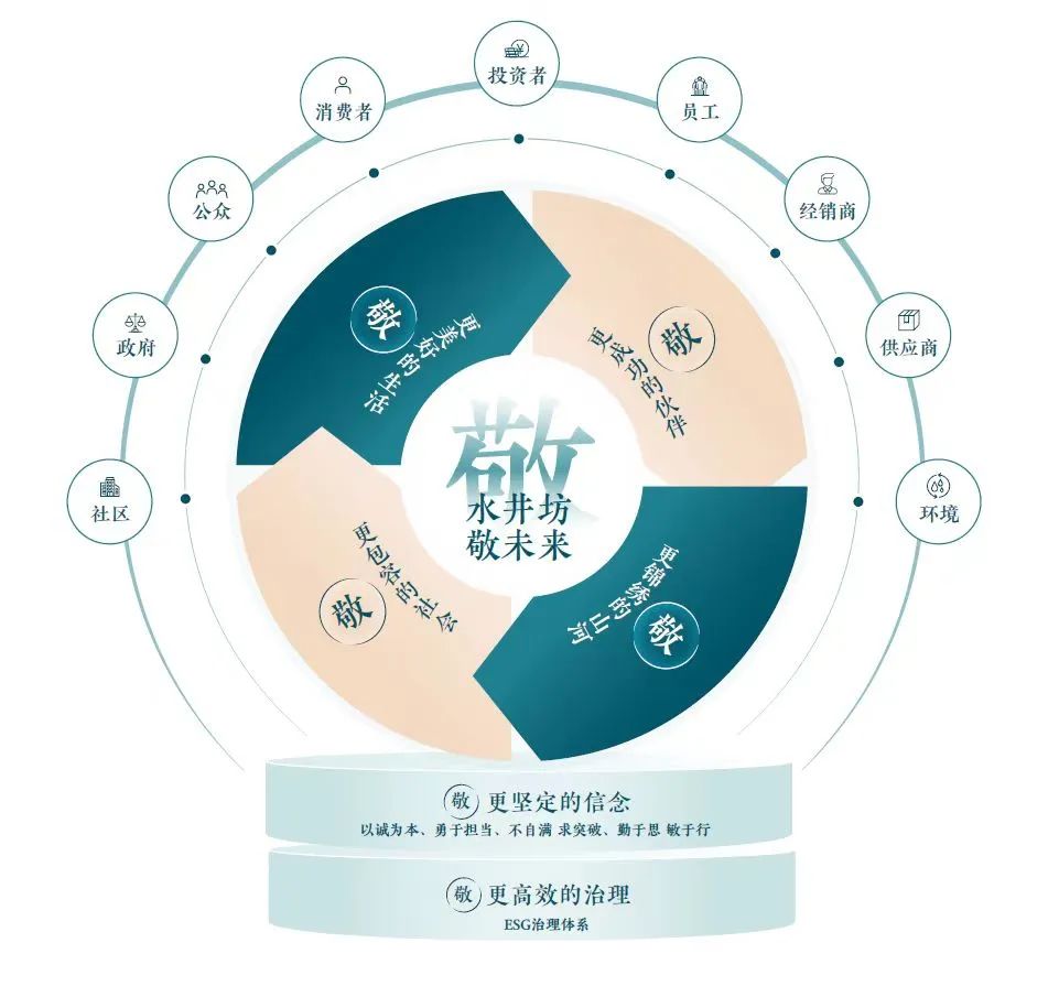 4月28日,水井坊发布了2022年环境、社会及公司治理(ESG)报告。2022年,水井坊发布首份ESG报告,并在其中公布了“水井坊.敬未来”ESG战略。