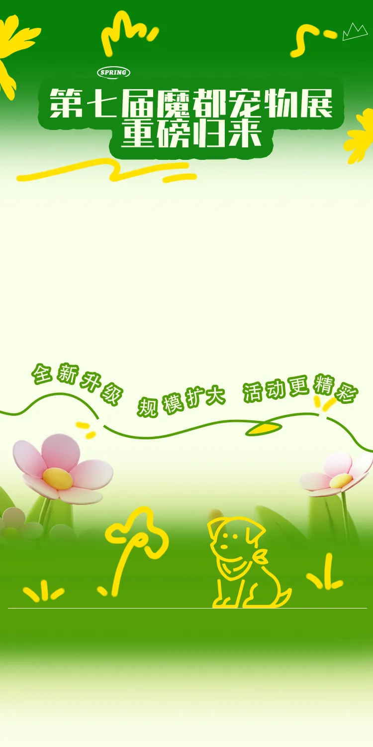 第七届,我们不负期待,全新升级!更全的宠物品类、更酷的互动玩法、更专业的王牌赛事、更丰厚的现场福利、更暖的逛展体验,只为给你和毛孩子,打造一场真正火爆、治愈、难忘的宠物盛宴!