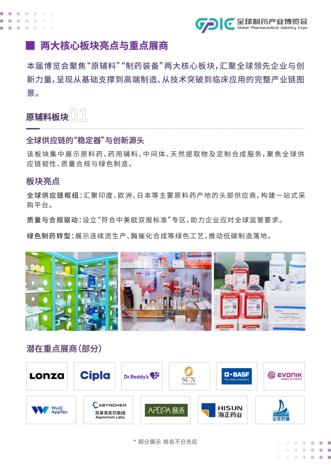 展会设原料药辅料、制药装备、国际供应链、实验室配套、产业集群五大展区,联动全球多国制药行业协会与权威机构,同期举办政策解读、精准对接、新品发布、技术交流等活动,打造集展示、交易、合作、推广于一体的国际化医药产业平台。