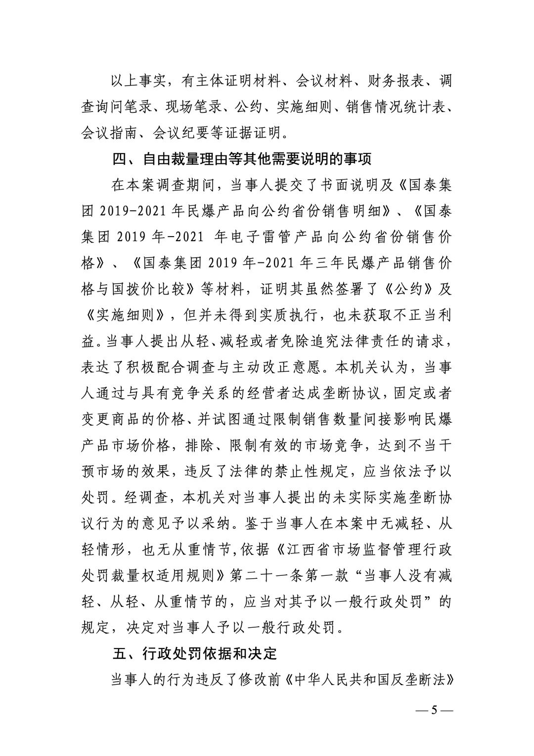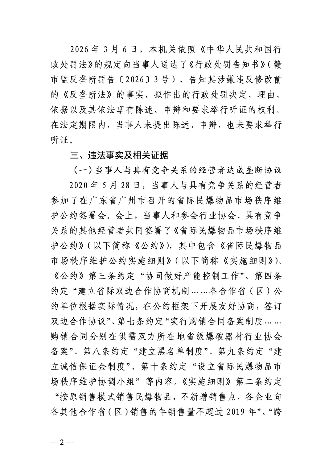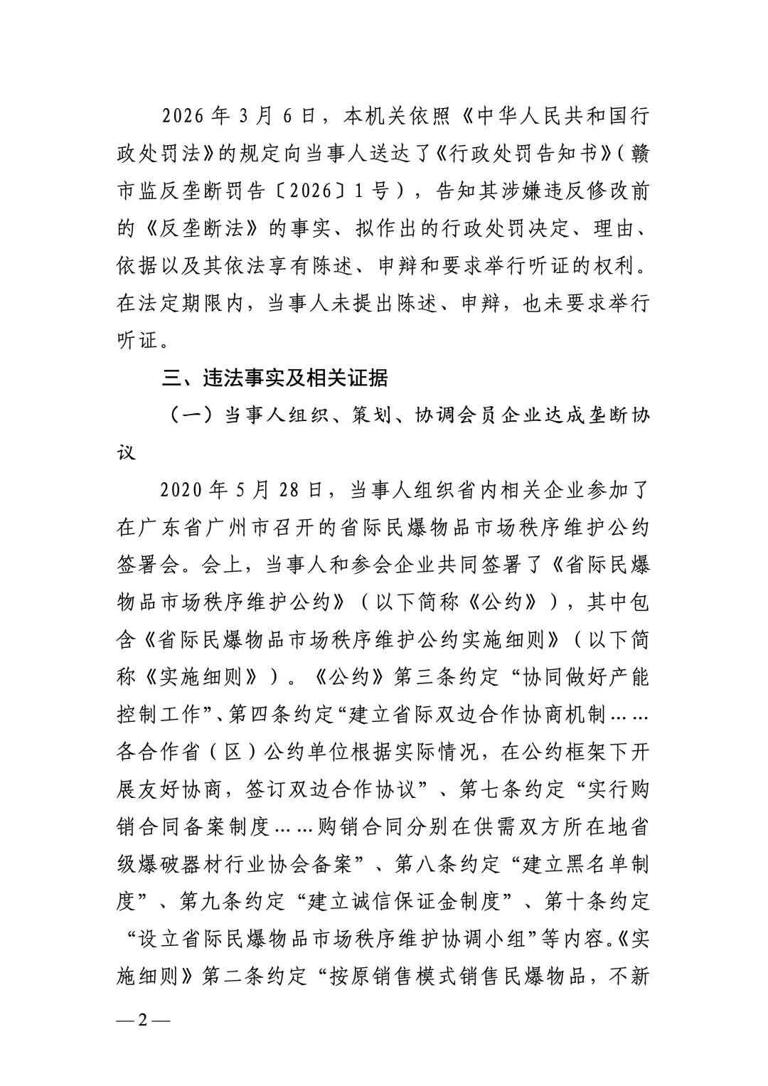 市场监管总局发布江西省爆破器材行业协会组织民爆企业达成垄断协议案行政处罚决定书